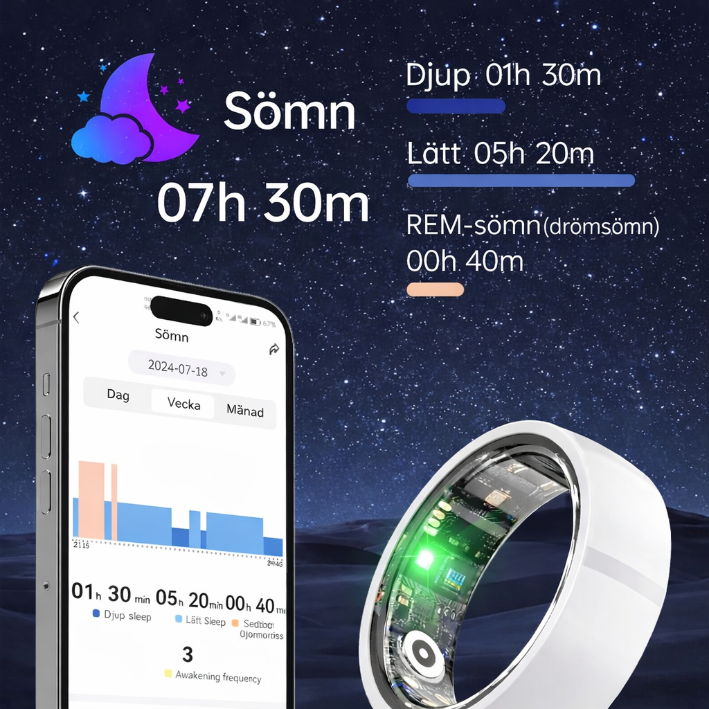 Inspira Sense Smart Ring övervakar din hälsa och aktivitet, mäter din sömn, din rörelse och synkroniserar din data till en app i din mobil. Den är ett stilrent och diskret alternativ till en smartklocka och fitnessarmband, perfekt för dig som vill ha hälsodata utan att kompromissa med designen.